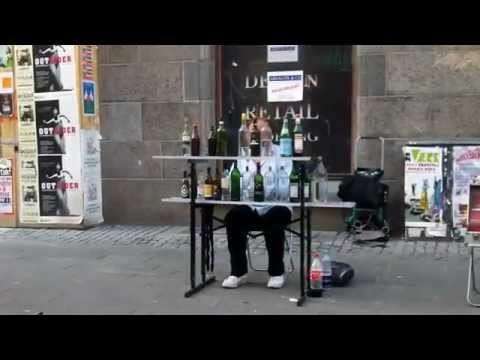 Músico de rua toca Mozart só com garrafas de vidro